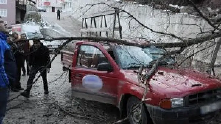Seyir halindeki kamyonetin üzerine ağaç devrildi