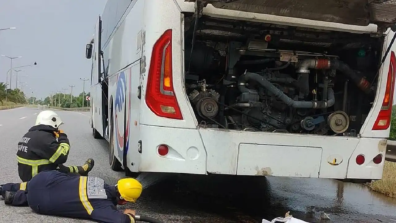 Yangın, Dörtyol ilçesi çevre yolunda meydana geldi. Seyir halindeki otobüsten alevler yükseldiğini gören şoför, durumu 112 Acil Çağrı Merkezine bildirdi.