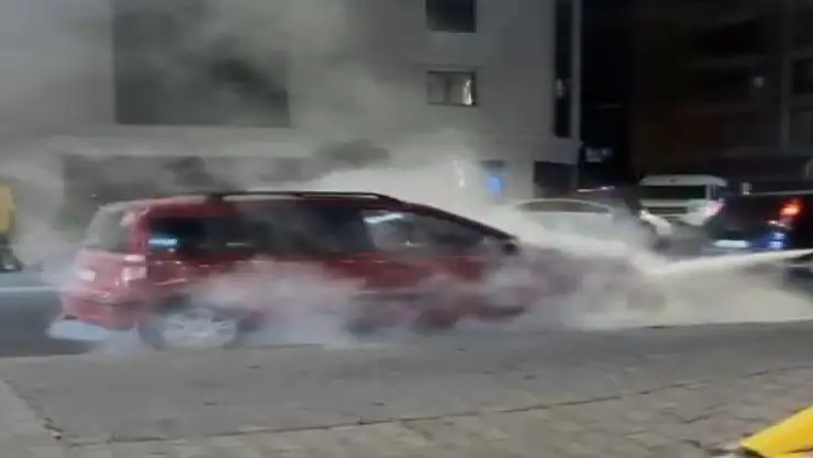 Seyir halindeki otomobil alev aldı, yangını vatandaşlar söndürdü