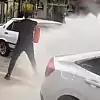 Olay, Gazi Caddesi üzerinde meydana geldi. Edinilen bilgiye göre, seyir halinde olan otomobil, bilinmeyen bir nedenden dolayı motor kısmından yanmaya başladı.