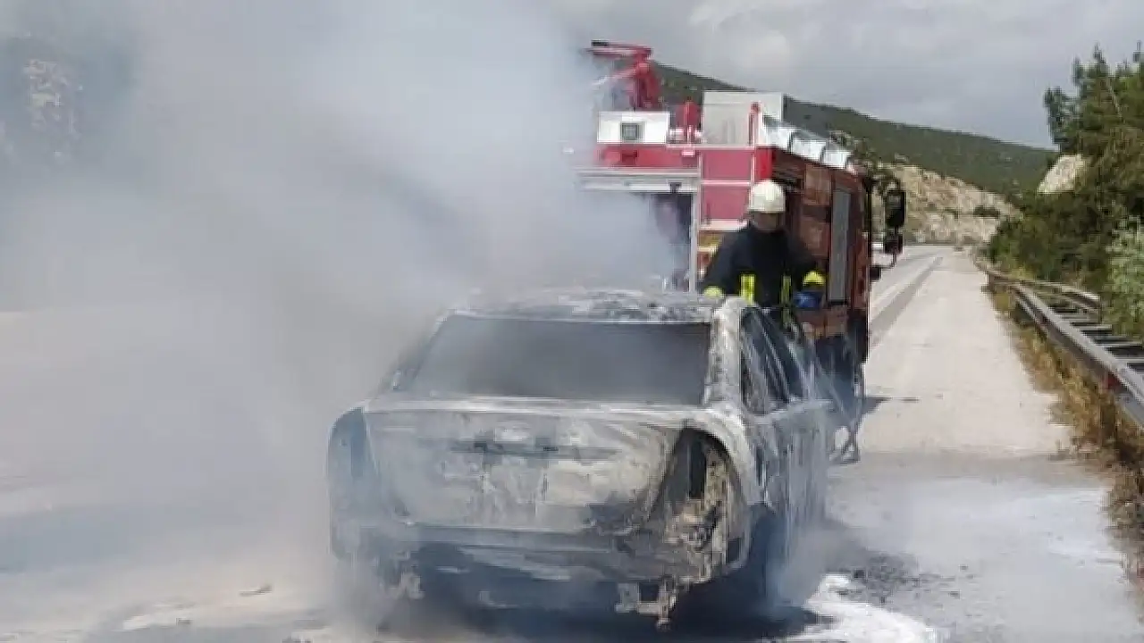 Mersin'in Tarsus ilçesinde seyir halindeki otomobil alev alev yandı.
