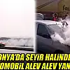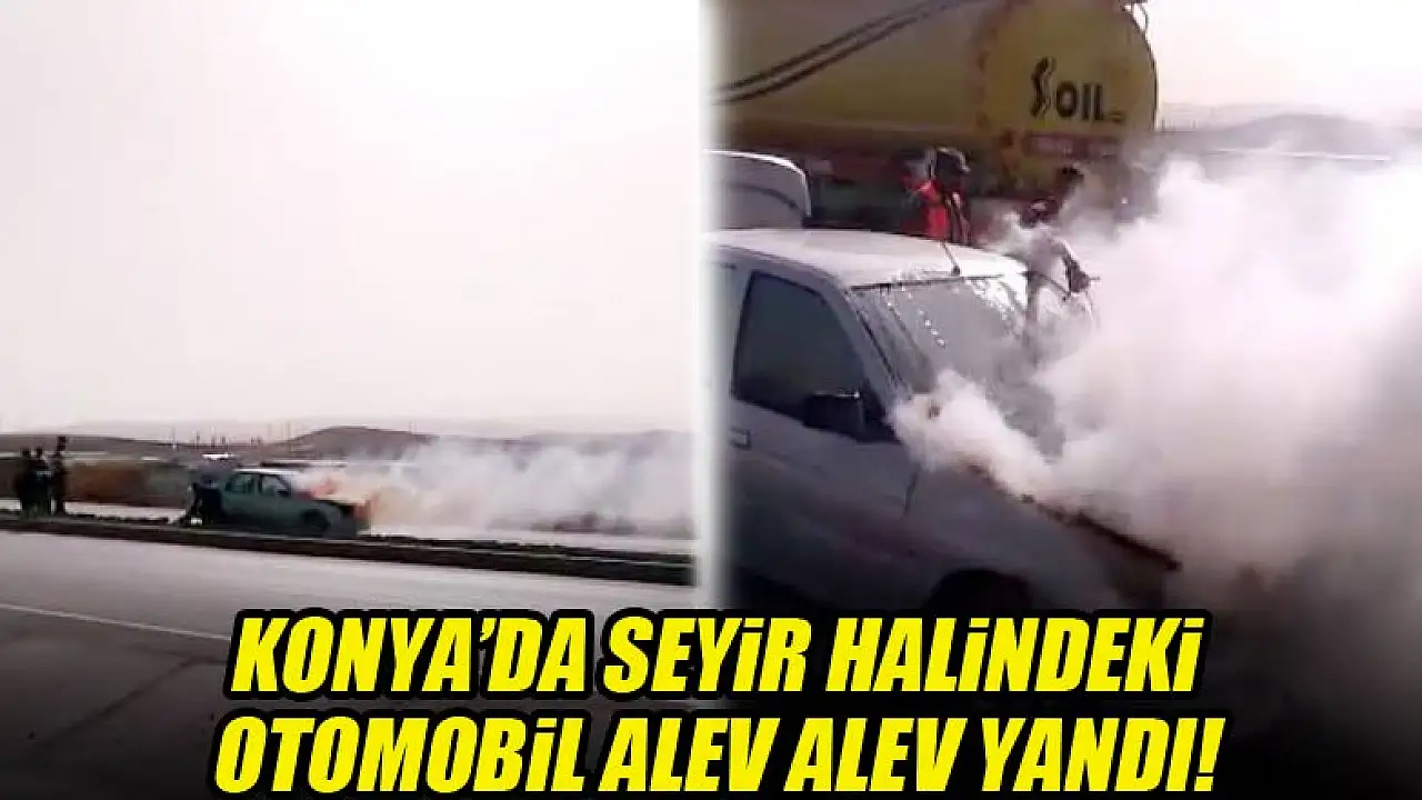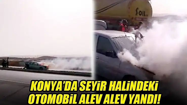 Konya'nın Ereğli ilçesinde, seyir halindeyken yanmaya başlayan otomobil yoldan geçen su tankerinden uzatılan hortumla ve vatandaşların çabasıyla söndürüldü.