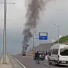 Adıyaman'da seyir halindeki bir otomobil alev alev yandı.