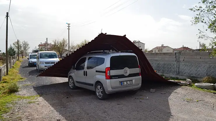 Aksaray'da seyir halindeki hafif ticari aracın üzerine, rüzgarın etkisiyle yerinden kopan çatı düştü. Sürücü Uğur Şimşek (27) ile annesi yara almadan kurtulurken, araçta hasar oluştu.