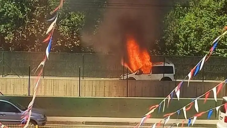 Bursa'da seyir halindeyken alev alan hafif ticari kamyonet kısa sürede küle döndü. Sürücü şans eseri kurtuldu.