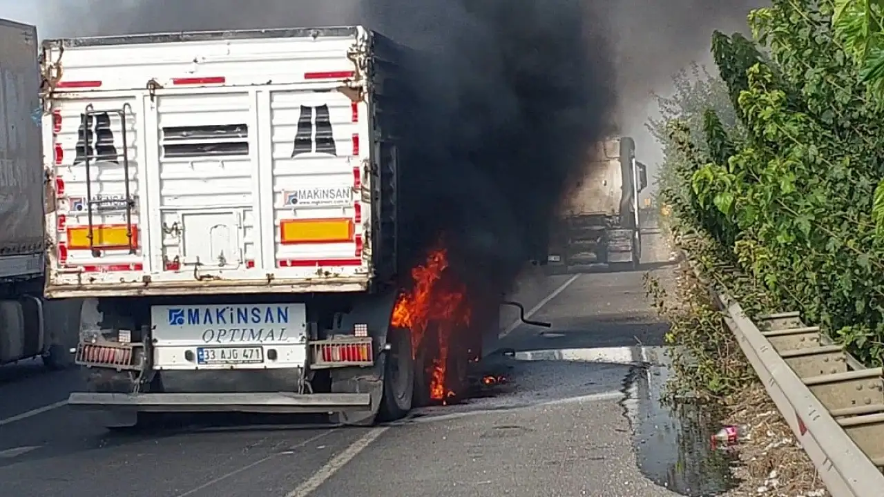 Seyir halindeki tır alev aldı