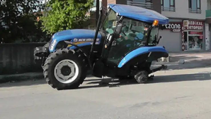 Seyir halindeki traktörün tekeri yerinden çıktı