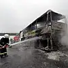 Olay yerine gelen itfaiye ekiplerince uzun uğraşlar sonucu kontrol altına alınarak söndürülen yangında, yolcu otobüsü kullanılamaz hale geldi.