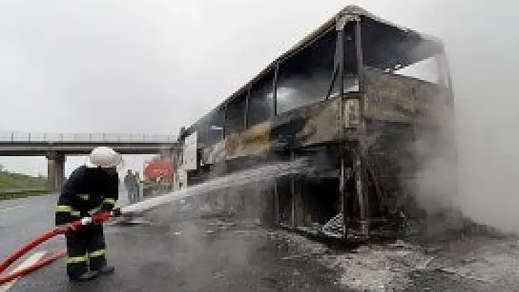 Seyir halindeki yolcu otobüsü alevler içinde kaldı