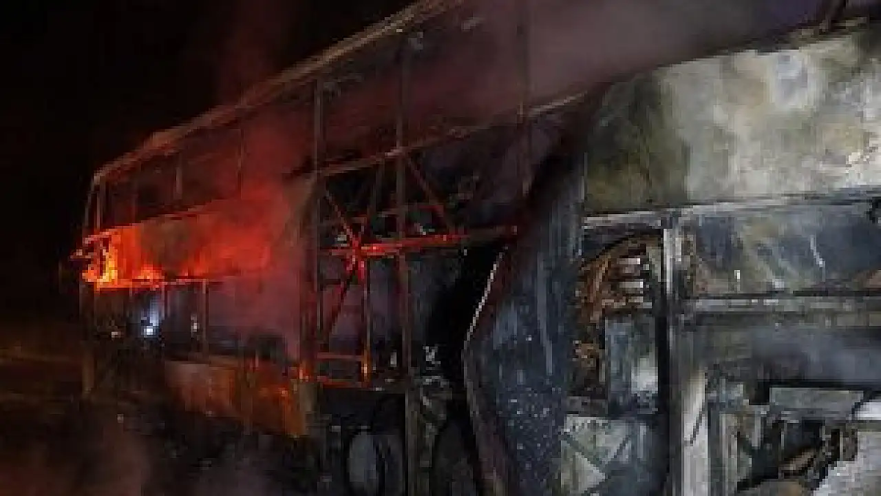 Kırklareli'de elektrik aksamından çıktığı tahmin edilen yangın sonucu seyir halindeki bir otobüs tamamen yandı.Sürücünün aracı yol kenarına çekerek yolcuları tahliye etmesi olası can kaybını önledi.