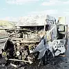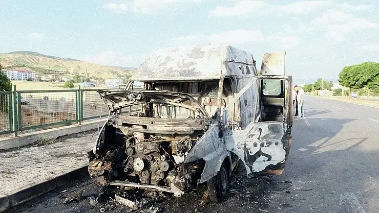 BİNGÖL'de, seyir halindeyken alev alan Sancak Belediyesi'ne ait bir minibüs, yanarak kullanılamaz hale geldi.