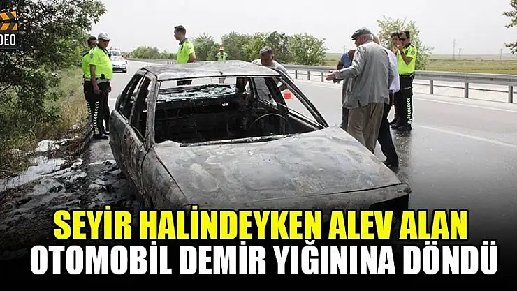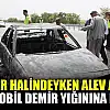 Seyir halindeyken alev alan otomobil demir yığınına döndü