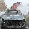 Van'ın Muradiye ilçesinde seyir halindeyken alev alan otomobil küle dönerken, araçta bulunan 4 kişi ise yara almadan kurtuldu.