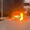 Seyir halindeyken alev alan otomobil kullanılamaz hale geldi
