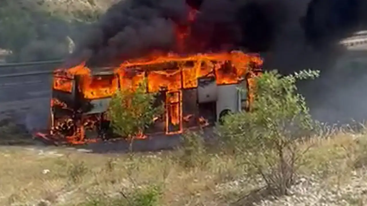 Seyir sırasında otobüs alev aldı şoför yolcuları tahliye etti