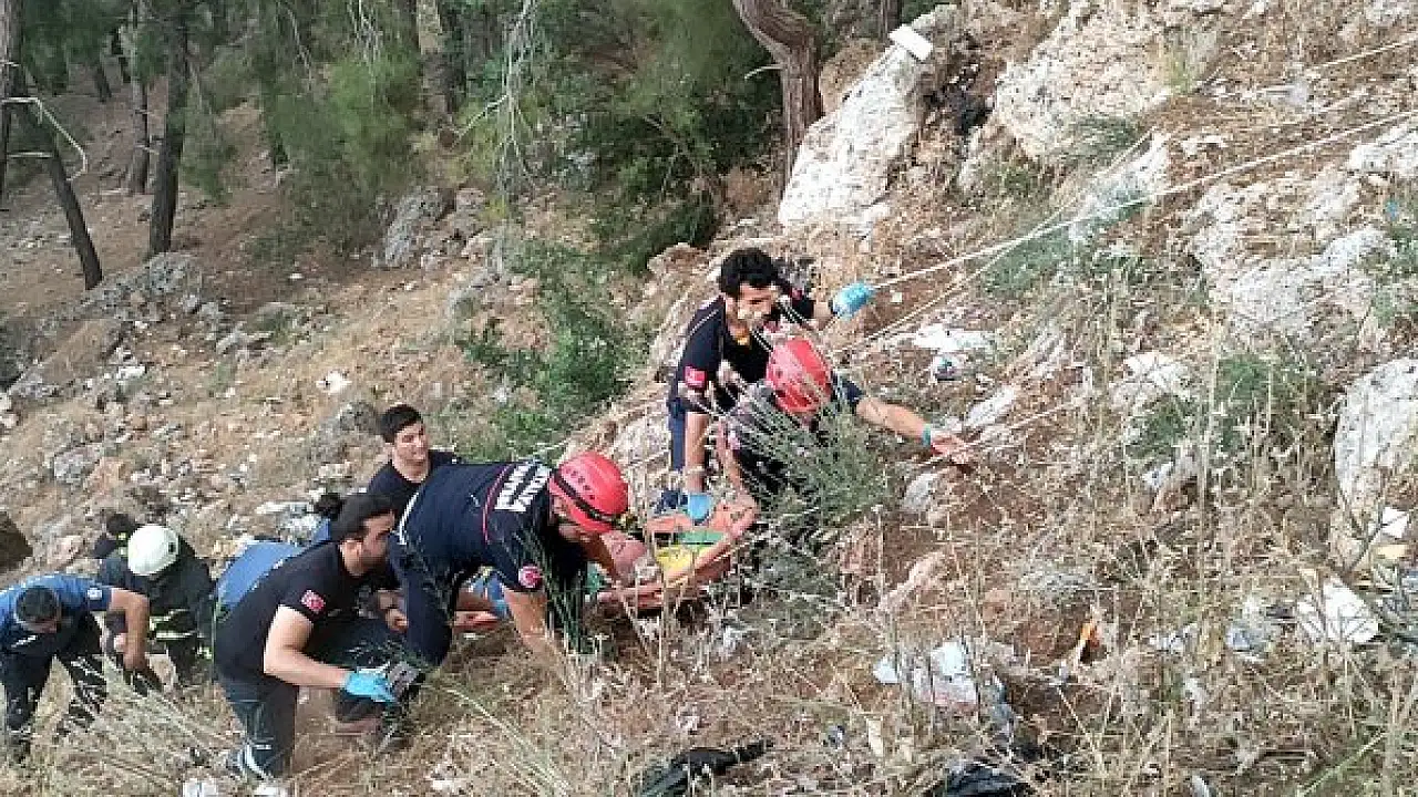 ANTALYA'nın Kepez ilçesinde seyir terasında manzarayı izlerken dengesini kaybeden Yusuf Ercan (49), yaklaşık 20 metre yükseklikten kayalık alana düştü. İtfaiye ekipleri tarafından halatla sedyeye bağlanarak yukarıya çıkarılan Ercan, ambulansla hastaneye kaldırıldı.