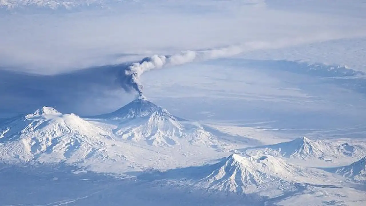 Shiveluch Yanardağı, Kotzebue'nin 2 bin 172 kilometre güneybatısında bulunuyor.