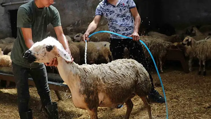 Sıcaklık 52 dereceye ulaştı, besiciler koyunları soğuk suyla yıkadı