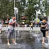 Sıcaktan bunalan çocukların eğlenceli serinliği