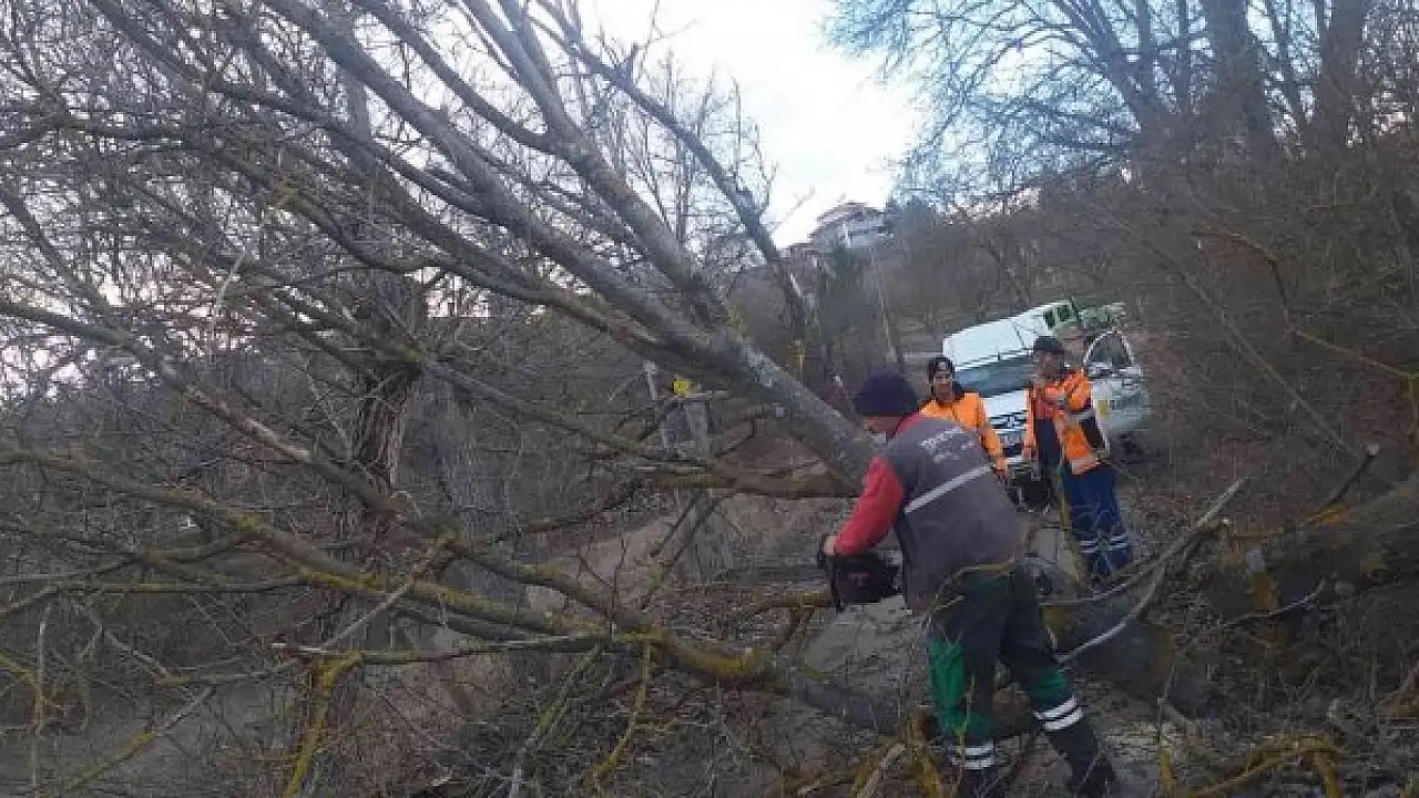 Kastamonu'nun Tosya ilçesinde etkili olan şiddetli rüzgar sebebiyile ağaçlar devrildi.