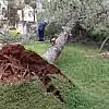 Şiddetli rüzgarda ilçe merkezinde bulunan 70 yıllık bir çınar ağacı da kökünden sökülürken, polis ekipleri yaşanabilecek olumsuzluklara karşı önlem aldı.