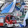 Afiş, olay yerine gelen itfaiye ekiplerince kontrollü şekilde kaldırdı.