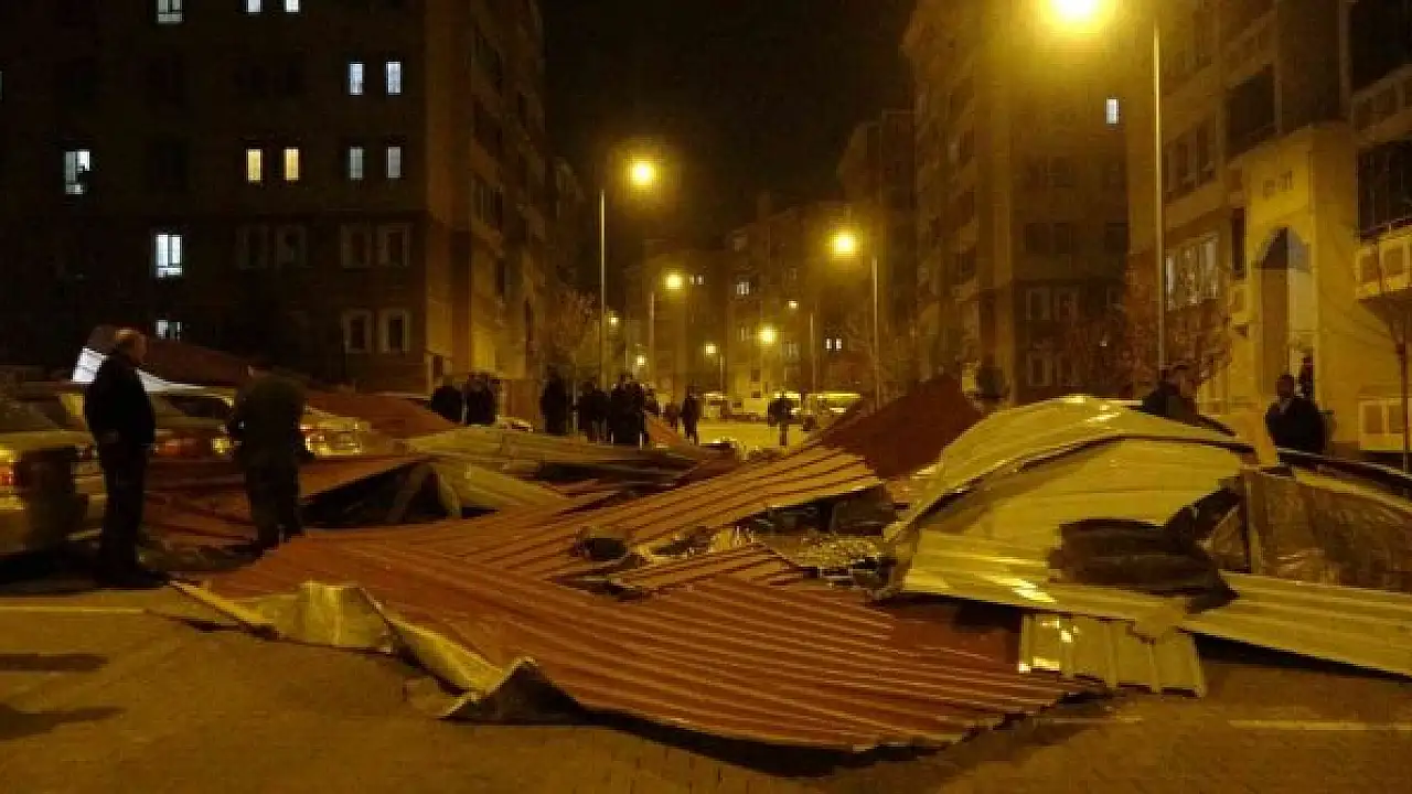 Bingöl'de iftar saatlerinde etkili olan şiddetli rüzgar çatıları uçurdu.