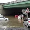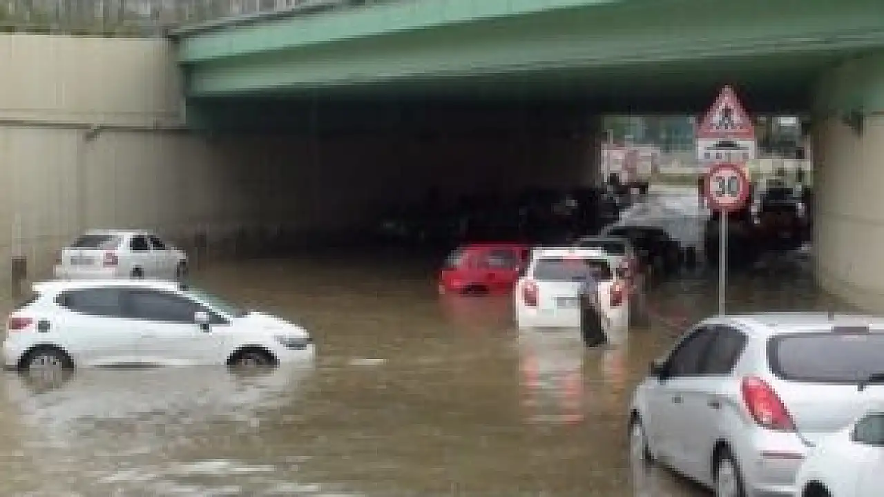 Şiddetli yağışla birlikte araçlar suya gömüldü