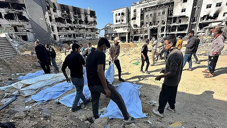 Gazze Şeridi'nin en büyük tıbbi tesisi olan Şifa Hastanesi'nin bahçesinde bulunan üçüncü toplu mezardan 49 Filistinlinin cenazesine ulaşıldı.