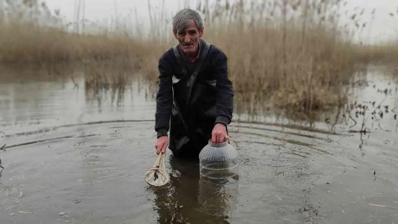 Şifalı sülük avcısı buz gibi suyun içinde saatlerce sülük arıyor