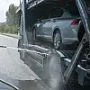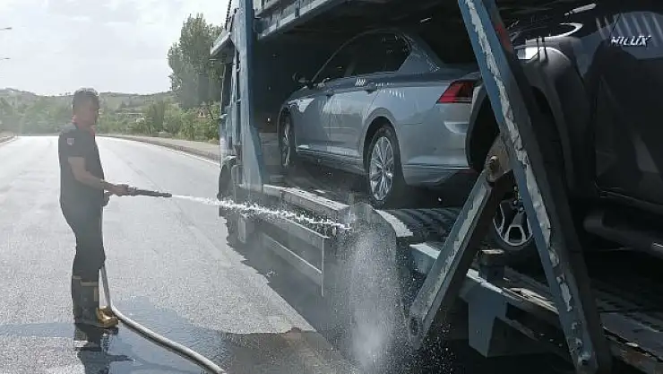 Sıfır araç taşıyan tırın lastikleri alev aldı