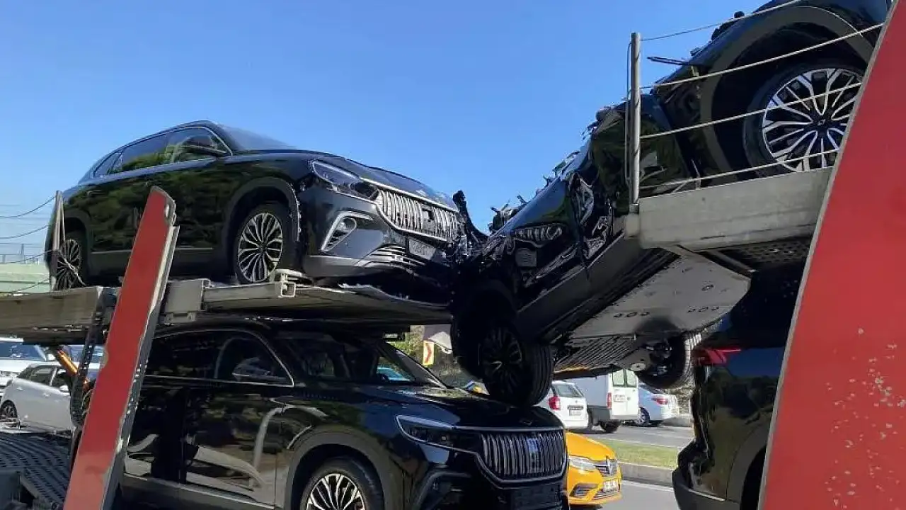 Bakırköy Sahil yolunda TOGG taşıyan tır, Ataköy Marmaray Köprüsüne vurdu. Tırın üzerinde bulunan 3 tane araç hasar alırken, trafik tek şeritten sağlandı.