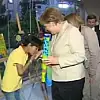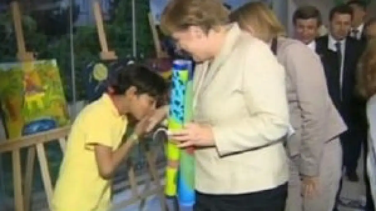 Suriyeli bir çocuk Merkel'in elini öptü. Sığınmacı çocuğun sıcak tavrı büyük ilgi gördü.