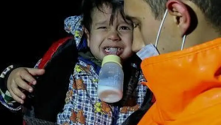 Kontrollü şekilde yanaştırılan teknedeki 11'i çocuk 27 sığınmacı gemiye alındı. Tekneden personel tarafından gemiye transfer edilen bir bebeğin dişleriyle sıktığı biberonunu bırakmaması dikkati çekti.