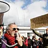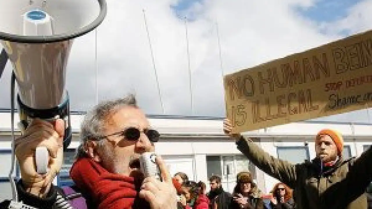 Üzerlerinde "Kimse yasa dışı değil" yazılı uçurtmalar uçuran göstericiler, "Yazıklar olsun AB", "Sınırlara hayır, tehciri durdurun" şeklinde slogan attı.