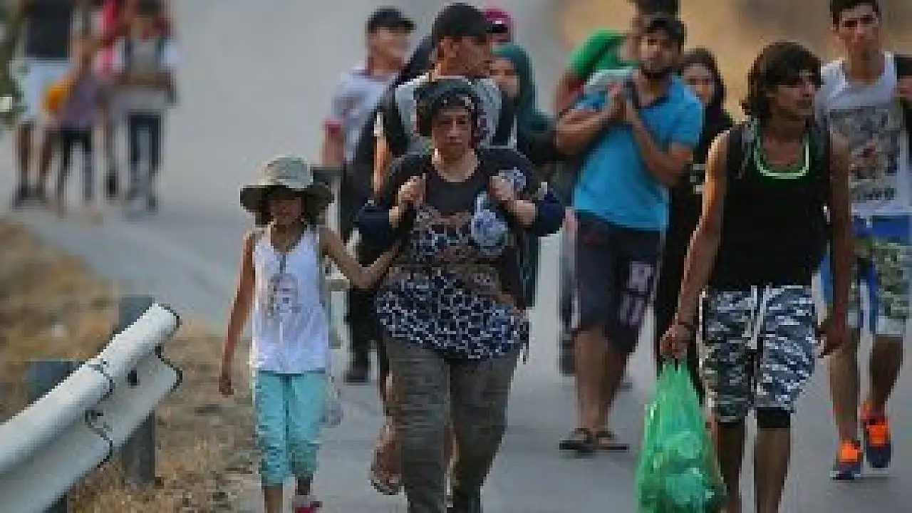 Ölüm tehlikesini göze alıp Yunanistan'ın Midilli adasına geçen sığınmacılar, kayıt altına alındıkları kent merkezine ulaşabilmek için yaklaşık 65 kilometrelik yolu yürüyor.