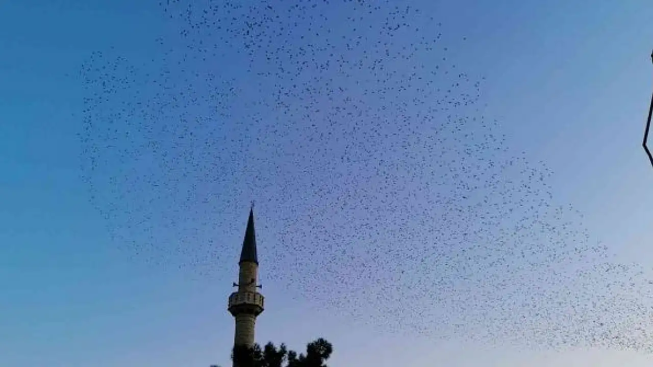 Tekirdağ'ın üzerinde adeta dans edercesine hareket eden sığırcık kuşları izleyenleri mest etti.