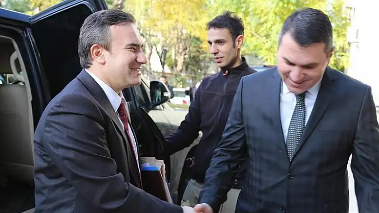Siirt Belediye Başkanı Tuncer Bakırhan'ın terör soruşturması kapsamında tutuklanmasının ardından İçişleri Bakanlığınca, Siirt Belediyesine görevlendirilen Vali Yardımcısı Ceyhun Dilşad Taşkın, Vali Mustafa Tutulmaz'ı makamında ziyaret etti.