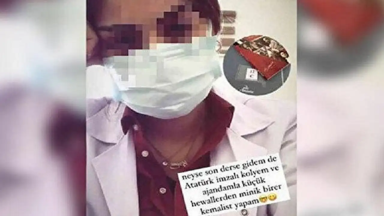 Öğretmen Zeynep Ç., kendi fotoğrafını paylaşarak yazdığı yazıda, "Neyse son derse gidem de Atatürk imzalı kolyem ve ajandamla küçük hewallerden minik birer kemalist yapam” dedi.