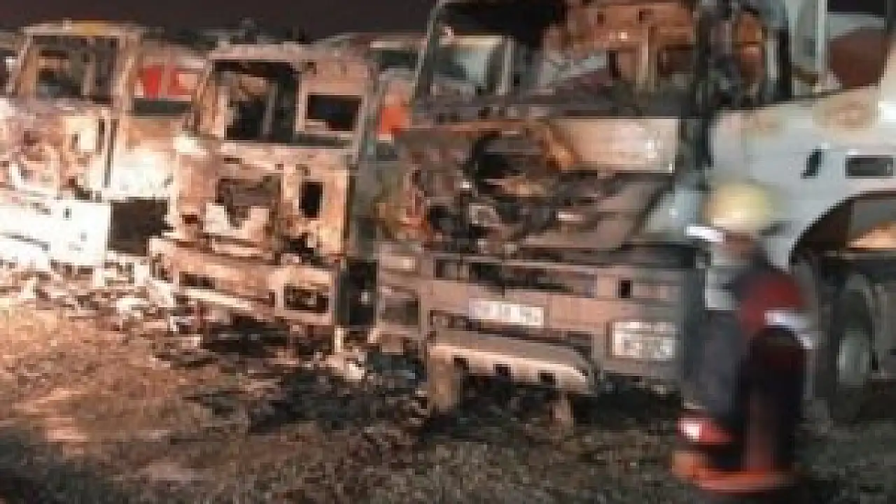 Alınan bilgiye göre, Siirt-Kurtalan karayolu yakınlarında Küçük Sanayi Sitesi yolunda bir hazır beton şantiyesine giren yüzü maskeli kişiler, 4'ü beton mikseri, biri kamyon 5 aracı benzin dökerek ateşe verdi.