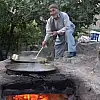 Siirt'te ateş üzerindeki kazanlarda kaynatılarak imal edilen organik pekmezin yapımına devam ediliyor.