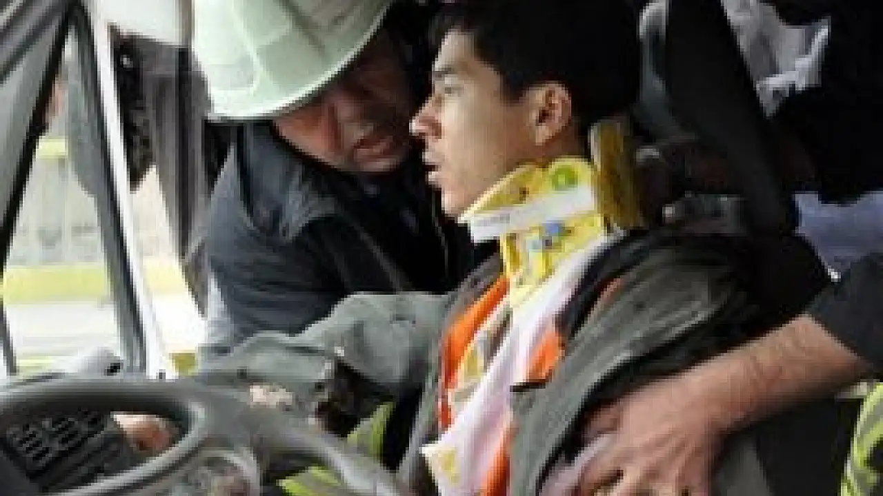 Kazada, kamyonette Koray Tekin (16) ile İbiş Şahin (42) yaralandı. Tekin, araçta sıkıştığı yerden itfaiye ekiplerince kurtarıldı.