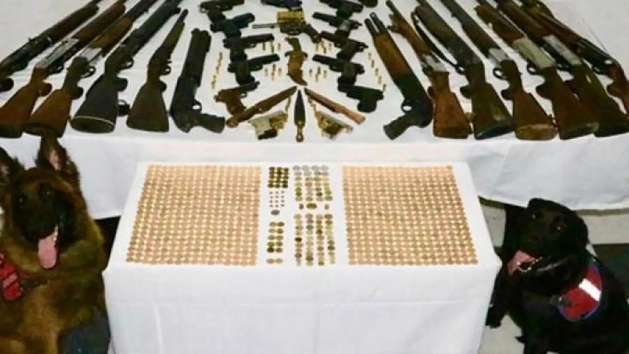 Adreslerde yapılan aramada; 8 adet ruhsatsız tabanca, 6 adet kurusıkı tabanca, 13 adet ruhsatsız av tüfeği, 2 adet faturasız gaz tabancası, 203 adet muhtelif çapta tabanca fişeği, 268 adet av tüfeği fişeği, 4 adet kama bıçak, 14 adet şarjör, 759 adet tarihi eser olduğu değerlendirilen altın görünümlü sikke, 2 adet tarihi obje ele geçirildi.
