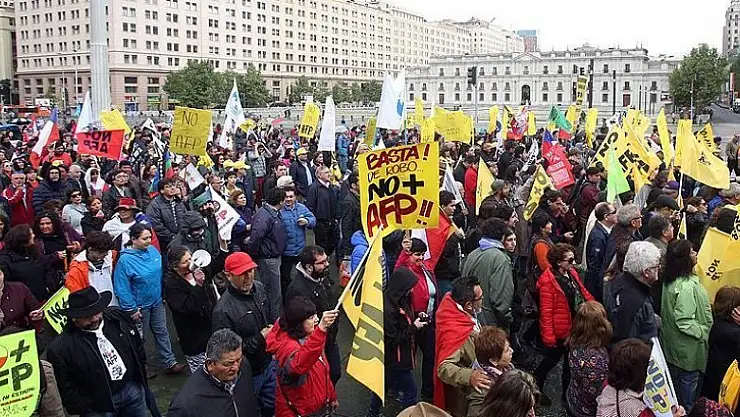 Şili'de on binlerce kişi, eski diktatör General Augusto Pinochet döneminde başlatılan bi̇reysel emeklilik sistemini protesto etti.