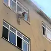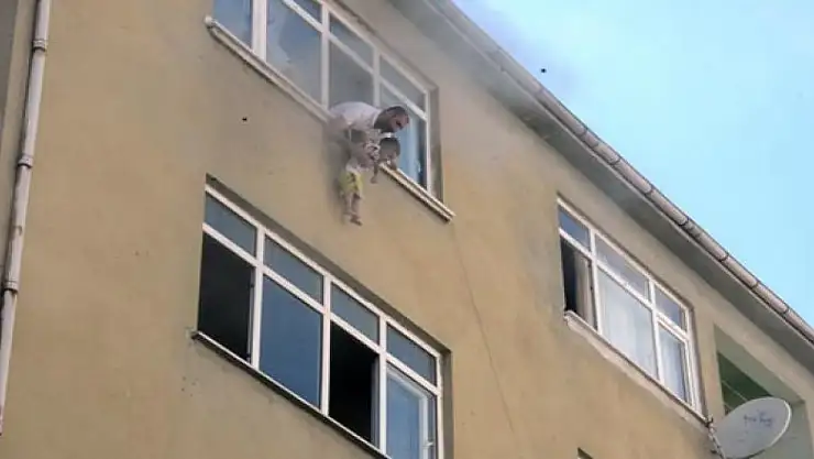 İhbar üzerine olay yerine sevk edilen Silivri İtfaiye ekipleri kısa sürede olay yerine gelerek 5'inci kattan sarkıtılan küçük çocuğu ve annesini kurtardı.