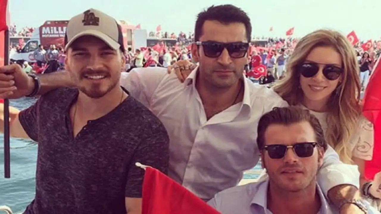 Ünlü oyuncu Sinem Kobal, Yenikapı'daki Demokrasi ve Şehitler Mitingi'nde eşi Kenan İmirzalıoğlu, Kıvanç Tatlıtuğ ve Çağatay Ulusoy ile birlikte çektikleri bir fotoğrafı sosyal medya hesabından paylaştı.