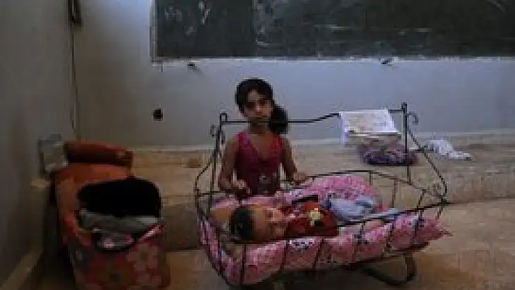 Suriye'deki iç savaş yüzünden Şam'dan kaçan 18 Arap aile, Kamışlı ilçesindeki bir okulda yaşamlarını sürdürmeye çalışıyor