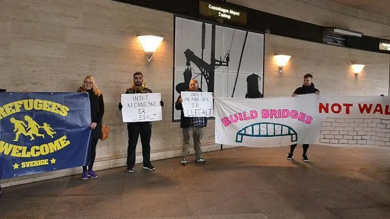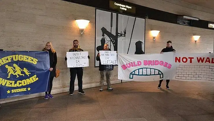 Danimarka'da bir grup aktivist, Kopenhag Havalimanı'nda mültecilere destek gösterisi düzenledi.