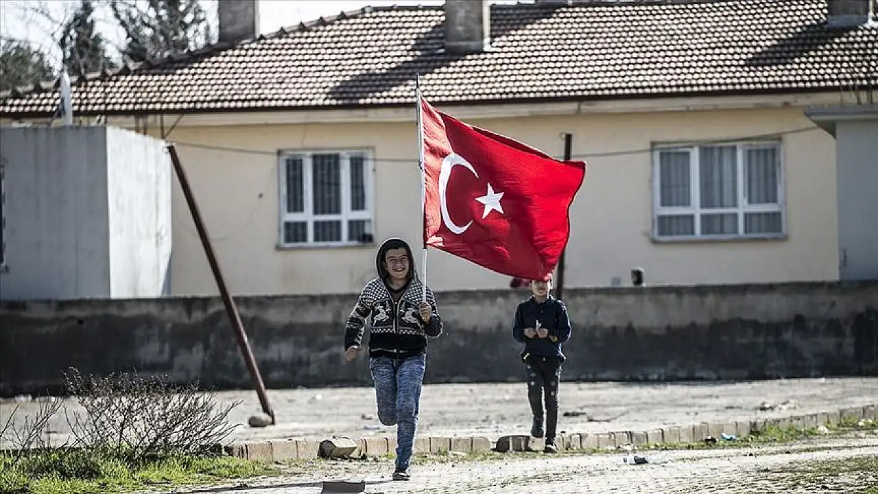 Mahalle sakinleri tarafından askeri araçların geçiş istikametindeki yol üzerinde duvarlara, ''Önce Vatan'' yazısıyla Türk bayrağı resmedildi.