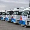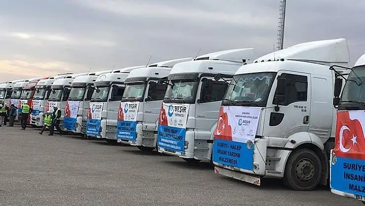 Beşir Derneği Şanlıurfa Şubesi öncülüğünde, sivil toplum kuruluşlarının desteğiyle "Halep İçin Elini Uzat" kampanyasında temin edilen un, su, kuru gıda, elbise, çocuk maması ve battaniyeler, gönüllü vatandaşlar tarafından 11 tıra yüklendi.